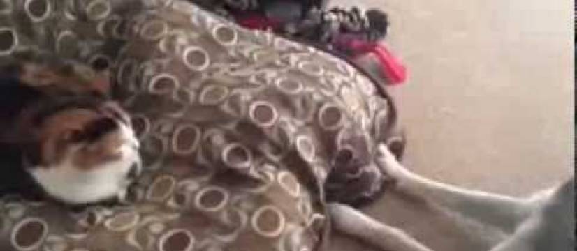 Γάτες κλέβουν το κρεββάτι σκύλων